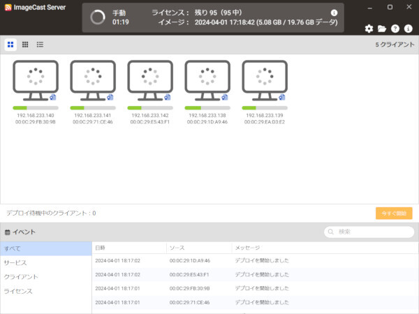 ImageCast Serverの起動メディアは、起動環境のみを含むため、従来のUSBデプロイメディアと比べてイメージのコピー時間が不要になる。また、イメージ更新時にメディアの再作成や入れ替えが必要ないため、ImageCast Serverのソースの更新のみで対応可能。これにより、同一の起動メディアを複数マシンで効率的に再利用できる。