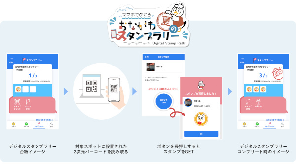 7月に開催される「おながわみなと祭り」は、毎年町内外から約1万9000人が訪れる、おながわ四季のまつりの中で最大規模のイベント。今回、キャッシュレス地域活性化支援サービスを採用することで、スマートフォン一つで手軽に参加できるスタンプラリーイベントをきっかけに、ステージショーなどの各プログラムが予定される中心エリア以外への回遊や、夏の祭りの大きな課題となっている来訪者への熱中症対策として、特設される氷嚢配布スペースへの誘導なども促していく。また、昨冬のまつりでの実証実験から継続して利用者のデータを収集することで、女川町の地域活性化施策への貢献を目指す。