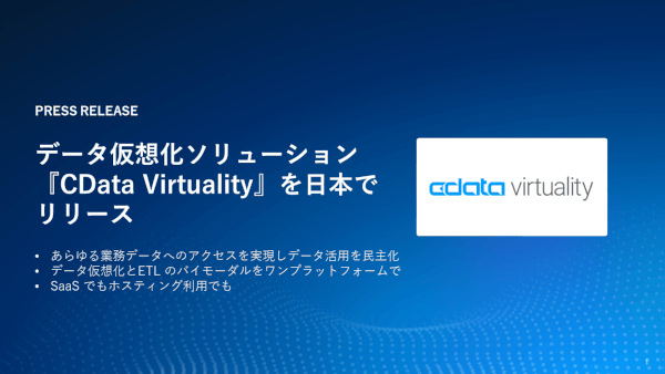 データ活用コストを最大80%抑える、「CData Virtuality」を日本市場でリリース