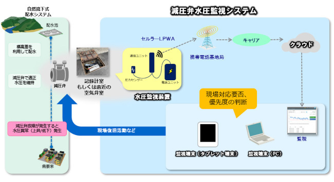 神戸市水道局は、これまで、減圧弁の維持管理のために、現場に設置した水圧計のデータを定期的に回収する作業を実施してきた。また、減圧弁の障害発生については、市民からの通報などによって把握するケースが大半で、データ収集やトラブルの復旧作業などに時間を要し、効率化が求められていた。
