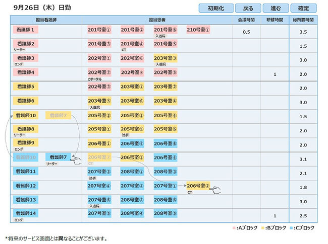 医療機関では医療従事者不足が課題となっており、多くの患者に医療サービスを届けるための「看護業務/管理業務の効率化」が求められている。同社は、セル看護提供方式を開発した飯塚病院とAISとのワーキンググループで、医療分野でのAIの活用を共同で研究している。今回のサービスは、「患者数の均等割り」「動線のムダ削減」など、あらゆる看護方式に活用できるように開発されている。導入を通して、公平で効率的な看護師配置を実現できる。