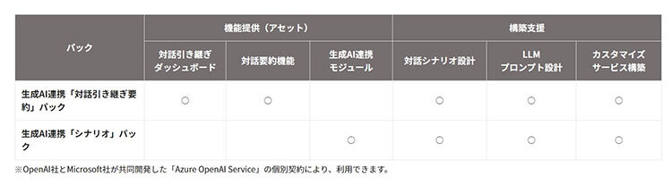 LINE WORKS AiCallは、独自開発したAI技術により、ボイスボットサービスのなかでも高い音声認識精度と聞き取りやすい音声を実現できることから、さまざまな業界・業種の顧客で多くの支持を得ている。今回、提供する生成AI連携パックは、LINE WORKS AiCallの導入を検討している顧客を対象に、ボイスボットとのやり取りを要約しオペレーターへの引き継ぎを可能とする「生成AI連携『対話引き継ぎ要約』パック」と、ボイスボットと生成AIを専用モジュールで連携し、より柔軟な応対フローを実現できる「生成AI連携『シナリオ』パック」をリリースする。
