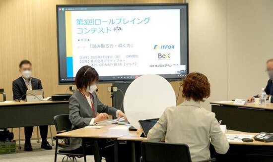 第3回目となる今回のテーマは「汲み取る力・導く力」。顧客が伝えるわずかな情報から正確に要望をくみ取り、解決に導く力を競い合った。アイティフォーとアイティフォー・ベックスは、今後も継続的にコンテストを開催し、人材育成をグループ全体で推進する。スタッフの技能向上によって顧客満足度の向上を目指していく。
