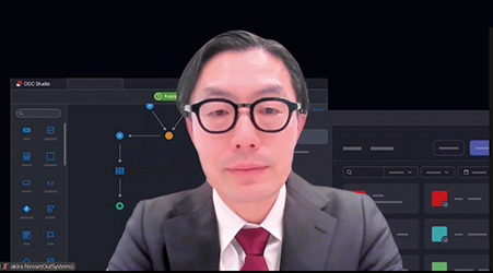 ソリューションアーキテクトの廣瀬晃・部長はOutSystems Mentorについて、「人間と生成AIが共同作業をして、よりよいサービスをつくることを支援するサービス」と説明した。