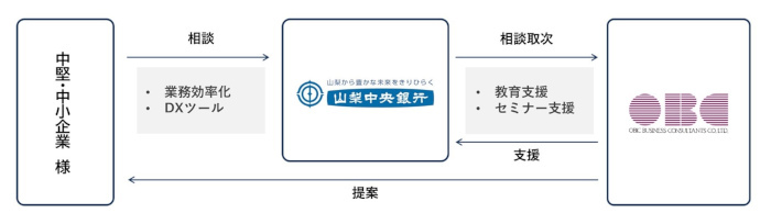 具体的には、山梨中央銀行の顧客と、山梨県を中心とする中堅・中小企業へ業務クラウドサービスを通したDXを実現する体制・仕組みの構築を提案。また、変化の激しい制度改正やデジタルニーズにともない、セミナーなどを通じて顧客に最新の情報を発信していく。