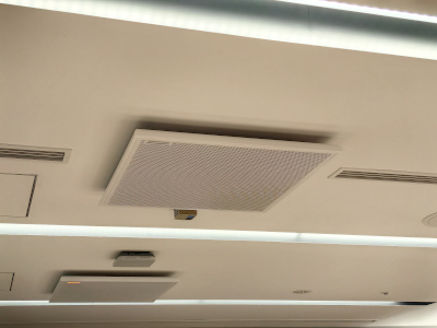 天井に取り付けられたIntelliMix Room Kitのスピーカーフォン