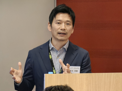 基調講演では、日本マイクロソフトでエバンジェリストを務める西脇資哲・業務執行役員が登壇し、「日本マイクロソフト社が考えるビジネスコミュニケーションの可能性」と題したプレゼンテーションで、AIによる仕事の効率化と、コミュニケーションの革新の可能性について説明した。