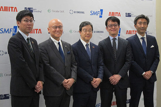 同日に記者会見を開き、SMFLの関口栄一・代表取締役専務執行役員、アミタホールディングスの熊野英介・代表取締役会長兼CVO、アビームコンサルティングの山中義史・執行役員、サーキュラーリンクスの田部井進一社長、GXコンシェルジュの栗林亘社長が登壇。CCEの提供について抱負を述べた。(下澤 悠)