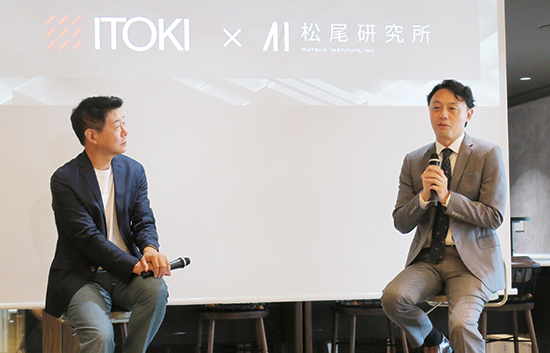 イトーキの湊宏司社長(左)と松尾研究所の松尾豊・技術顧問