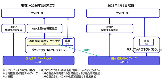 現在、ネットワークカメラをはじめとするi-PRO製品の国内販売店向けの販売やマーケティングはパナソニックコネクトが行っているが、26年4月以降はi-PRO自身が直接担う。パナソニックコネクトからi-PRO製品を仕入れていた販売店約500社については、i-PROとの直接取引に切り替わることになる。
