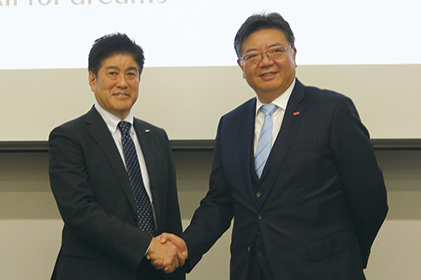 ニデックの田中裕司・執行役員(左)とLESの張磊社長