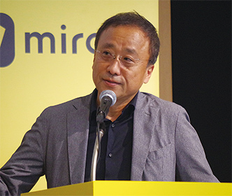 説明会には同社のユーザーであり、販売パートナーでもあるNECと日立製作所も登壇し、米Miro(ミロ)製品を活用した製品開発の戦略を説明した。NECの吉崎敏文・執行役Corporate SEVP兼CDOは、成長事業と定める「BluStellar」において、事業立案から製品化の過程でミロ製品を活用しているといい、「AI機能と人間が協働する業務モデルを構築し、顧客の経営課題の解決への道筋の構築を高速化する」とした。日立製作所の黒川亮・AI&ソフトウェアサービスビジネスユニット事業主管/Vice President AI Strategyは、フィジカルAI「HMAX」の製品展開で活用していると紹介し、「業界ごとの知見が集まるイノベーションの場としたい」と語った。