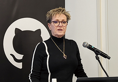 当日、来日したGitHubアジア太平洋地域担当のシャリーン・ネイピア・バイスプレジデントは、「GitHubの新規利用者の約80%が、利用開始から1週間以内にAIコーディングアシスタント『GitHub Copilot』を利用している」と紹介。開発者にとってAIは必須になりつつあると分析する。一方で、市場全体については「多くの開発ツールが孤立している」と指摘。解決策として開発者向けのAIエージェント統合基盤「Agent HQ」を提示した。