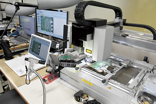 主要な電子回路が集まるシステム(マザー)ボードの修理は細かい作業になるため、BGA(Ball Grid Array)と呼ばれる部品の交換には専用装置を導入。自動化した工程は8倍のスピードになった。機械化が進む一方、繊細な作業は人の手が支えている。