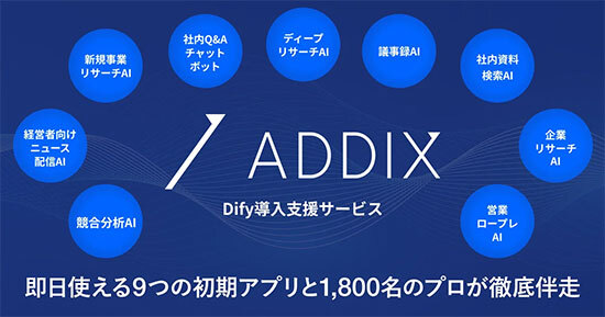 ADDIXは1月22日、「Dify導入支援サービス」を提供開始すると発表した。企業ごとの業務課題や活用目的に応じて生成AIを実務に定着させ、生産性向上と業務効率化を実現する。