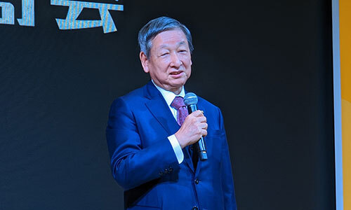 朝礼でスピーチする大塚裕司社長