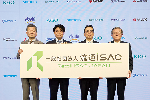 合同記者会見にはトライアルホールディングスの永田洋幸社長と三菱食品の京谷裕・相談役らも出席した。出席した4社を含め、流通ISACの設立発起人には花王やサントリーホールディングスなど10社が名を連ねている。