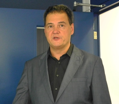 登壇するRichard Jonkerバイスプレジデント。ReadyDRは世界でも初のアナウンスとなった
