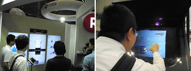 「街」ゾーンでは昨年から続いて2度目の出展となった楽天/楽天技術研究所では、楽天市場を中心とした”カタチ”を紹介した。「IoT時代の店舗エンハンスメント」と位置づけ、顧客の属性や服装などの環境情報をセンサで読み取り、膨大な数の中からより顧客の意向に沿った商品を提案するシステムをはじめ、Eコマース出展店舗のリアルな体験をエンハンスする展示を披露。その横では、JTBのグループ企業のJTBプランニングネットワークが、インタラクティブサイネージを出展した。アスカネットが提供する空中上に像を結合させる特殊ガラスにセンサを組合せることで、空中映像がインタラクティブに操作可能なソリューション「エアリアルイメージングプレート」に、旅をイメージさせるコンテンツを配信。店舗にいながら、旅のイメージを膨らませることが可能とした。いずれも最新のIT技術に自社が持つコンテンツを最適な形で配信することで、来場者の関心を呼び込んでいた。
