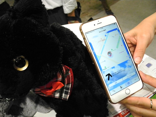「暮らし」ブースで出展していた豆蔵ホールディングスブースでは、オープンストリームが迷い猫の位置特定IoTサービスとして「ねこもに」を展示した。これは猫に取り付けた首輪に内蔵された発信機(BLEビーコン)が、スマートフォンに猫との距離情報を伝達。スマートフォンにインストールされた専用アプリが、猫のいる確率の高い場所に飼い主を誘導する。半径50メートルを離れると発信機から情報が届かないが、首輪をつけているすれ違った猫たちの情報もスマートフォンに集めるため、猫好きコミュニティ機能も目下開発中だ。アマゾンなどのECサイトを通して3000円~4000円で、来年春の発売を目指している。もともとSIerとして知られる同社だが、昨年あたりから「新しいビジネスを社内で生み出せないか」(システムインテグレーション事業部の中村真子アプリケーションスペシャリスト)と模索するなか、今回のソリューションに辿り着いたという。