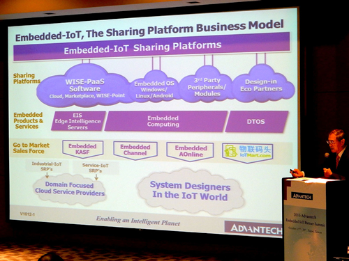 また、小売り、物流、エネルギー管理、設備管理など、特定の業種・業務でよく使われる機能をWISE-PaaS上に用意し、ユーザーやパートナーが開発するアプリケーションからAPI経由で呼び出せるようにした。この仕組みを「Solution Ready Platforms(SRP)」と呼んでおり、同社では今後SRPや前出のEISのような、IoT向けプラットフォームの提供を前面に打ち出していく。さらに、サードパーティが開発したソフトウェアやサービスも、WISE-PaaSのマーケットプレイス上で販売できるようにする。リウCEOはこの戦略を「シェアリングプラットフォーム事業モデル」と呼んでおり、アドバンテックのプラットフォームを通じてユーザーやパートナーが技術やアイデアを共有し、革新的なIoTソリューションの実現を目指していく。