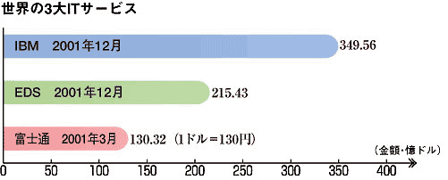 その第一声は、「IBMは巨大なITサービス会社といっても、今や世界の当市場規模は4500億ドル(59兆円)と巨大に膨れ上がった。IBMの01年12月決算で、IBMグローバルサービス部門の売上高は350億ドル(4兆5500億円)で、シェアは8%にも満たない。従ってIBMはITサービスのトップといっても、ニッチプレーヤーの1人に過ぎない。IBMにとってITサービスを拡大するチャンスはいくらでもある」というものであった。