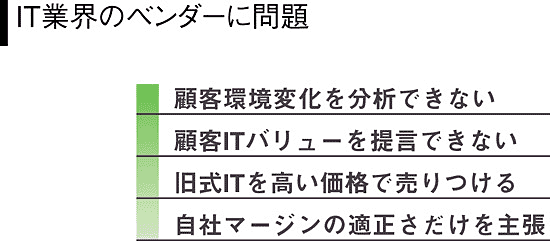 同氏は論文で、「企業が注意しなければならないことは、ITベンダーの誘惑にかられて過剰ITをしてしまうことだ、それよりも現行の既存システムの稼働率が低いことに注目して、これ以上の投資をしないことを決断することが大切だ」と強調する。このカール論文にはITベンダーのマイクロソフト、インテルが反論ののろしをあげる一方、多くの米大企業のCIOやアナリストは、「心して自社ITの反省に取り組むべきだ」と賛同発言をした。その1人、モルガン・スタンレーの主席企業業績アナリスト、レベッカ・ランクル氏は、「私は『IT自体が役立たず』とは認識していない。そのかわり私は、『市場要求の変化にもかかわらず、相変わらず旧式のITを堂々と売り込むベンダーが多いことが問題』ということを提起したい」と発言した。ランクル氏は、「ユーザー企業を取り巻く環境変化があまりにも急激であるため、ベンダー自身とこれと協業するパートナーが変化についていけていないことにユーザーIT部門は注意すべきだ。