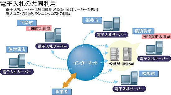 6市でシステムを共同利用することになった横須賀市では、公証・認証サーバーの増強に着手した。「運用責任を果たすため、能力アップを図るとともに、システムを二重化して安全性を高める」(佐藤清彦・財政部契約課課長)のが狙いだ。さらに、工事入札だけでなく、コンサルタントなどの委託契約や物品調達にも対象を広げていく計画だ。