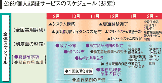 国民から確定申告などの申請書に、秘密鍵を使った電子署名と電子証明書が添付されて送付されてきたときに、アプリケーションシステム側から電子証明書の有効性を各都道府県の認証局に問い合わせて確認するといった手続きが必要になる。こうした接続実験を行った上で、各システムがいよいよ動き出すことになるわけだ。これまではメディアでも住基ネットばかりが注目され、肝心の公的個人認証サービスの知名度は今ひとつ高まっていない印象もある。それだけにサービス開始を目前に控えて、電子政府・電子自治体の本格普及に向けた啓蒙活動に本腰を入れていく必要がありそうだ。