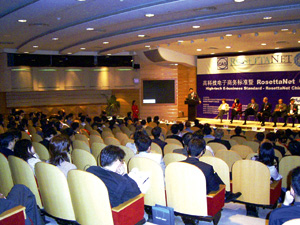 特に注目される講演は、ロゼッタネットChina代表の中国科技部・張智文博士の「中国におけるロゼッタネット推進戦略」である。そのなかで、ロゼッタネットChinaの目的として、ロゼッタネット標準の調査・研究、専門家の育成、中国の実情と戦略を踏まえた標準化・ロゼッタネット活動へのフィードバックを挙げていた。さらに、今後3年間に会員数を200-300、実装例として30-50社、マイルストーンプログラム(MP)を5-10設立という積極的な目標を掲げていた。加えて、e-コマースとe-ロジスティクスをキーワードとして、それぞれに専任のディレクタをアサインするとのことであった。