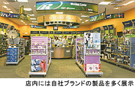 ■きめ細かいサービスが特徴 ラジオ・シャックの他社に対する優位点の1つが、その店舗数にあることは言うまでもない。しかもその7割近くが直営店という比率は、アメリカに多いフランチャイズチェーンのなかでも非常に高い。これは各店舗のコントロールが容易なことを示し、従業員の教育やアフターフォローを中心とする顧客サービスの充実を可能とする。本社が管理するデータベースにより、顧客が求める乾電池のサイズや適合する充電器の種類の確認など、些細な面まで行き届いたサービスは特筆に値する。