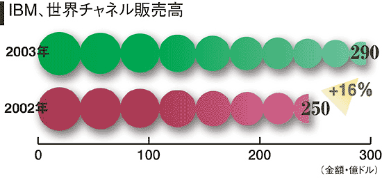 「IBMはここ数年、IBM製品販売の経験がないHPエンタープライズVAR(付加価値販売業者)数百社と、IBM製品の販売契約を結んだ。これはIBMの歴史でも初めての出来事だ。多くのVARがIBM陣営に加わったことで、市場でIBMプレゼンスは強化された」IDCやガートナー調査によっても、2003年世界サーバー市場でIBMはHPやサンを引き離しトップを維持し、シェアも5%上昇している。IBMグローバルビジネスパートナーのマイク・ボーマンGM(ゼネラルマネジャー)も次のように語る。「過去18か月でIBMは世界で400社のHPとサンのVARのリクルートに成功した。これの成果は直ちに現れ、03年にIBMが世界市場で2ケタの売上伸長を実現できたのも、これら新しくIBM陣営に加わったパートナーの貢献が大きかったからだ。IBMの世界市場における、パートナー販売は02年には250億ドル(2兆8000億円)であったが、03年には16%伸びて290億ドル(3兆2000億円)となった」