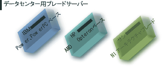 Linuxサーバー投入で出遅れたサン・マイクロシステムズも、自社の新コンセプト「N1」に準拠した、グリッドコンピューティングソフトをバンドルしたブレードを発表し、IBM、HPと競合するデータセンターブレード市場に参入した。ブレードは久々のサーバー新市場で、ブレードを巡る競合は激しくなる。(中野英嗣●文)