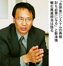 組織や人員の配置、業務内容、運用方法が明確になっていなければ、情報システムを構築しようにも、アプリケーションをどうするかなど対応が取れない。しかし、合併期日までの時間は限られている。ある程度の〝予想される組織〟を織り込んで、システム化に取り組んだ。こうして南アルプス市としての新しい情報システムが構築され、合併当日からトラブルもなく稼動している。しかし、新津氏によれば、「これで終わりではない」という。