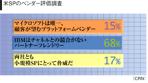 例えばSPが新たにIBMラショナルソフト製品を使う必要が出た時は、この取り扱い契約をしていなければ新規契約を締結する必要があり、要員教育コストもかさみ、さらにタイミングを失うリスクも高かった。それでも米SPはIBMと競合することがないため、同社を最もパートナーフレンドリーと評価していた。IBMチャネル戦略担当マイク・ボーマン副社長は、「IBMチャネル戦略はいよいよ完成期に近づいている」と自信を語っている。(中野英嗣●文)