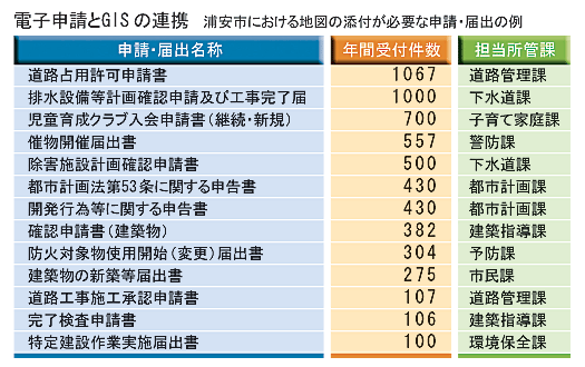 「e-まっぷ」は、6月1日から提供している「申請書ダウンロード」サービスでも活用できるようになっている。浦安市への申請で添付書類に地図が必要な164手続きのうち、電子化した43手続きのサイトで地図を記入する欄をクリックすれば、地図が自動的に作成できるようになっている。「地図を手書きすることは、面倒だという声が多かった」が、GISを活用することで不満を解消できた。