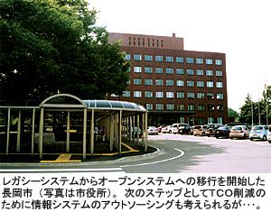 長岡市は、これまでのレガシーシステムからクライアント/サーバー(C/S)型のオープンシステムに移行し、来年4月1日に稼動開始することにしている。「すでに移行作業は始まっており、庁内にサーバーを置いている」(金子淳一・長岡市企画部情報政策課長)が、現在の長岡市の情報システムの運用を受託しているNSCSとしては、やがてはアウトソーシングに移行させたい、と考えている。