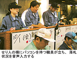 従来は、書類にまとめた荷受情報をもとにせりを実施し、落札後の荷渡票も手書き伝票だった。荷受からせりまで一通り業務が終了すると、今度は事務所で手書き伝票を手作業で照合した後、オペレータ10数人がデータベースに入力していた。せり終了後の午前8時から午後2時頃までこの事務作業が続く。多くの卸売業者は、今でもこの事務負担を抱えたままだ。