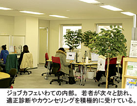 ハローワークとの違いは「就職の斡旋はしない」(同)ということ。「若者1人ひとりの適正を判断して、どういう仕事が向くのか、あるいはどういう仕事がしたいのか、どんなスキルを身につければいいのかなどをアドバイスする」(同)のが目的だ。その後の就職先の斡旋はヤングハローワークの仕事というわけだ。