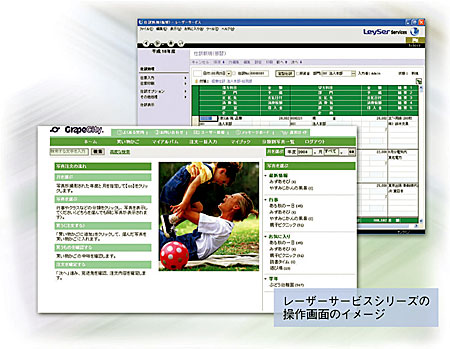 04年1月には、学校や幼稚園での生活風景や運動会などの行事を撮影した写真を、保護者がインターネットで閲覧し、プリント注文できるサービス「レーザー〈Photo Board〉(フォトボード)」を投入。続いて、今年1月に「レーザー〈教務〉」、今年3月に「レーザー〈学校給与〉」を新しく投入した。いずれのパッケージソフトも、XMLウェブサービスを使ったASPサービスに対応しており、顧客である私立学校・幼稚園は既存のC/S方式と新しいASPサービスとを選択できるようになる。