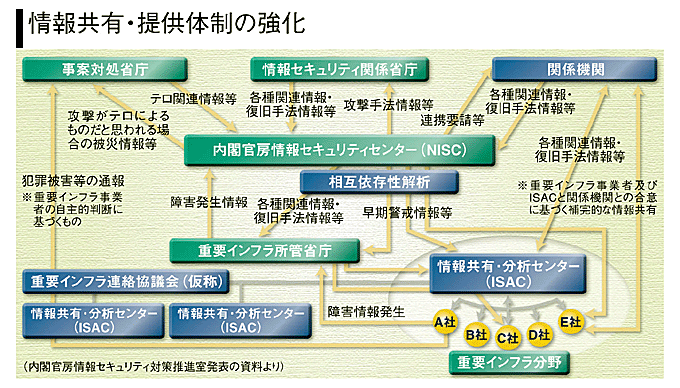 「重要インフラにおいて発生する障害のうち、ITの機能不全が引き起こす障害を、新たに『IT障害』と定義して情報セキュリティ対策の充実を図っていく」(山崎琢矢・NISC参事官補佐)。具体的には、NISCや所管省庁などの政府機関と、重要インフラを管理・運営している民間事業者の間でサイバー攻撃やIT障害などの情報を共有・提供する体制を強化。重要インフラごとにISAC(情報共有・分析センター)を設置して、異なる重要インフラの間でも情報共有できる体制を整えたい考えだ。JR西日本の脱線事故後の対応をみても、当事者にとって障害発生情報の提供は消極的になりがち。それだけに、活発な情報共有・提供に向けて意識改革を図り、情報を提供しやすい環境を整えていく必要がありそうだ。
