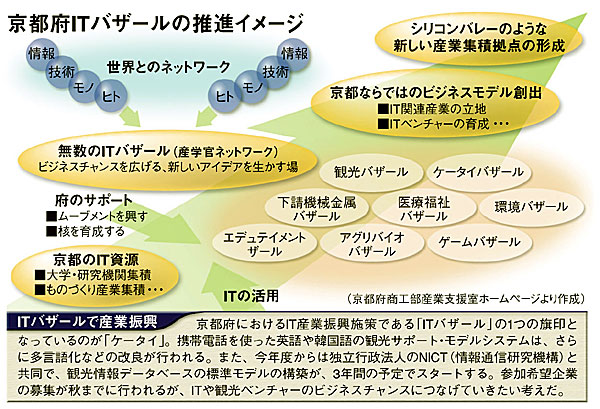 大学や研究機関が多く、良好な関係を維持していることも理由の1つ。だが、もう1つ見過ごせないのは、大阪の有力企業が家電などの最終消費者向けの製品を扱っているのに対し、京都の有力企業は機械や電子部品といった産業向けの製品を取り扱っている点。情報サービス産業に与える影響もおのずと異なる。ソフト開発会社が、制御など組み込み系ソフトの開発を受注するにしても、商品サイクルや開発期間、需要動向の性質などが違う。