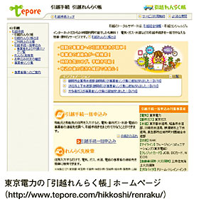 経産省の実証事業が壁に突き当たる一方で、独自にOSSを立ち上げてきたのが東京電力だ。02年1月から引っ越しにともなう手続きを一括で受け付けるポータルサイト「引越れんらく帳」を開設。現在では東電、東京ガス、東京都水道局、NHKなど14事業者を対象に引っ越し手続きの一括申し込みを受け付けている。当初から新規ビジネスとしてではなく、顧客サービスの一環という位置づけになっており、東電が運営する消費者向け生活情報サイト「テポーレ」のサービスメニューの1つとして、運営費用の多くは東電が負担しながらサービス拡大を図ってきた。OSSを新規ビジネスとして取り組もうとして挫折する企業が相次ぐなかで生き残ってきた理由と言える。
