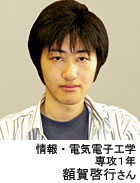 本科で5年間の一貫教育を受けたのち、さらに上級の2年間の専攻科へ進学した情報・電気電子工学専攻1年・額賀啓行さんは「市販のソフト開発ツールを自ら購入して半ば独学で作品の構想を練っている」と話す。ソフトの進歩は非常に速いものがあり、学生たちはいずれも授業の範囲を越えた新しいプログラムを学習し、作品に取り込んでいく。自ら未知の領域に取り組んでいく姿勢を学ぶことこそが、プロコン最大の狙いだ。