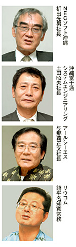沖縄県情報産業協会をはじめとして情報関連団体が集まる沖縄県情報通信関連産業団体は04年10月に稲嶺恵一・沖縄県知事に対して「沖縄県情報通信産業振興に関する提言」をまとめた。この提言では、沖縄県内のIT市場を活性化することで、産業振興を図るとともに人材育成にも貢献することを訴えている。「ソフト開発のオフショアが盛んになっているが、品質や言葉の問題で沖縄が有利な点は多い」(沖縄県情報産業協会の砂川毅・事務局次長)とアピール。地元雇用拡大を掲げ首都圏向けのソフト開発を目的に地元銀行や地元SIerなどが出資して02年に発足したフロンティアオキナワ21の社長を務める饒平名知寛・リウコム常務は、「今の沖縄県では人材のボリュームや企業の資金力、そして企業のマネジメントという面で直ちに事業や市場の拡大に対応できないケースも多いだろう」と見ている。