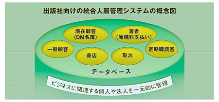 情報を管理していくうえでカギになるのは、さまざまな情報の一元化である。ダンクソフトがターゲットとしている業種のひとつに出版社があるが、往々にして情報管理の一元化に至っていないケースが見られるという。例えば、定期購読客を管理するシステム、取次・書店を管理するシステム、原稿料支払いのための著者の出稿状況を管理するシステム、潜在顧客獲得のためのダイレクトメール(DM)管理システムなど複数のシステムが個々に構築されているという具合だ。