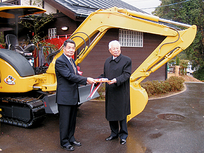 そこで、保全のためにショベルカー一式の寄贈を申し入れたところ、快く受け入れていただき、昨年1月15日格納庫共々寄贈式が行われました。当日はあいにくの寒風吹き荒ぶ中であったにもかかわらず、式場内は熱気に溢れ、笑い声の絶えない楽しいひとときを過ごすことができました。その後、「みのり号」と命名したショベルカーの見事な活躍で、早期に土堤が復旧できたと聞き、心から嬉しく思っています。