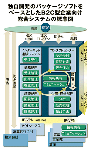02年にはインターネット通販のウェブサイトと密接な連携が可能な“B2C型”企業向けの販売管理システム「BIG通販Pro」を製品化。得意のCTIシステムと連携させることでインターネット通販やコンタクトセンター業務への対応を加速。CTIシステムを納入した顧客企業を中心として、約200社にBIG通販Proを納入している。