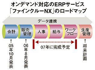 日本オフィス・システム(NOS)は収益拡大の切り札としてオンデマンド型のERPサービス「ファインクルーNX」シリーズを投入。昨年10月の発表直後から顧客企業の引き合いが急増している。今年度(2006年12月期)のファインクルーNX事業の売上目標1億3000万円に対して今年7月末時点の受注高ベースですでに1億2500万円を達成。受注が確定した企業は6グループ47社になるなど順調な滑り出しとなった。ERPなどの基幹業務システムは5-10年先の事業環境を見据えて設計することが多く、稼働までに時間がかかり、初期開発コストがかさむことが課題になっていた。ファインクルーNXはソフトウェアのライセンス費用を廃止。基本機能をパッケージでカバーし、顧客が利用するサービス内容に応じて月額課金するオンデマンド形態にすることで初期導入コストを大幅に抑えた。