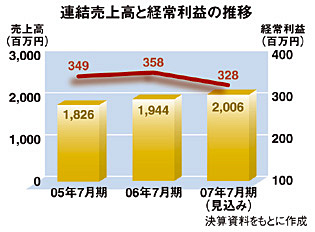 今年度中間期(06年8月-07年1月期)はソフト開発が順調に進んだことなどから当初予想を上方修正。新OSのWindows Vistaへの対応で業務アプリケーションを手直しする需要が高まったことも追い風になった。